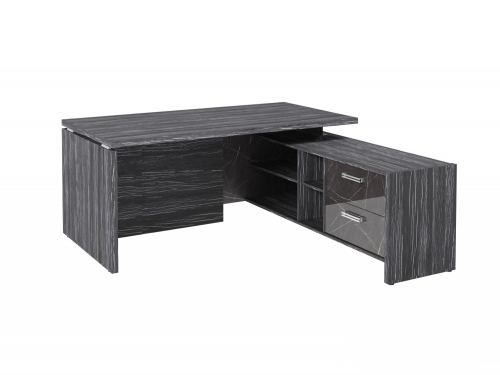 Столешница, бок стола и бок тумбы выполнены из ЛДСП толщиной 38 мм. Цвет - "Древесина Графит". Кромка 2 мм.