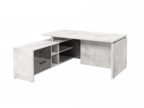 Стол с опорной тумбой FB-117L.GG (L) Хромикс белый/Камень Пьетра Гриджиа черный